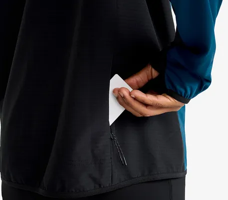 The Pace Wind Jacket is a stretchy and ventilating zip-up jacket, made from recycled materials and designed for high-intensity outdoor activities in cool weather. This sportswear jacket combines a wind and water-resistant main fabric with ventilating side panels made of stretch material, allowing excess heat and moisture to escape. While designed as a windbreaker to protect against chilly gusts and light drizzles, this jacket is soft enough to also function as a mid-layer when necessary. Smart features, such as a zippered chest pocket to keep your valuables safe, thumb grips for an athletic fit, and reflective details to enhance your visibility in the dark, add to its functionality. Whether you prefer trail running, cross-country skiing, or other activities, the Pace Wind Jacket prepares you for an active lifestyle year-round.