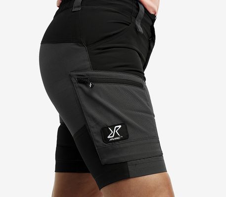 The RVRC GP Shorts are a pair of highly durable, multifunctional outdoor shorts designed for warm-weather outdoor activities. Made with PFC-free Hypershell® material, making them both wind- and water-repellent. Durable reinforcements over the thighs and seat add extra strength and protect against heavy wear and tear. The 4-way stretch panels at the top and inside thighs ventilate and provide incredible comfort. These durable shorts provide deep lateral thigh pockets for storing personal items and extended belt loops for attachment of carabiners. RVRC GP Shorts are the ideal choice for walking, fishing, climbing, or other outdoor activities calling for durable and functional outdoor shorts.