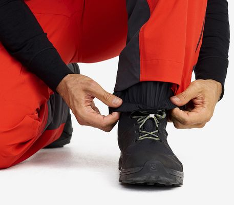 Leg endings equipped with snow gaiters that keep you dry and fits comfortable over your ski boots.