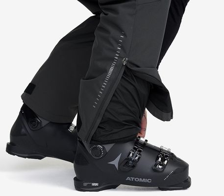 Leg endings equipped with snow gaiters that keep you dry and fits comfortable over your ski boots.