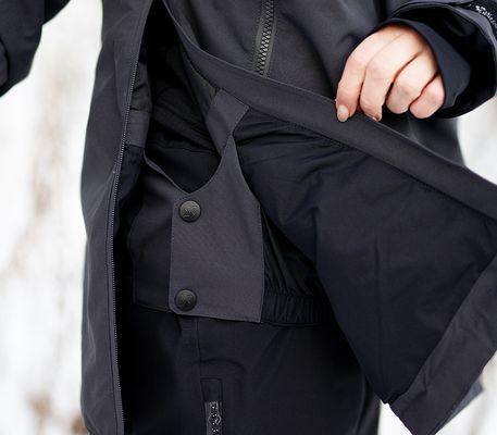 Thumb-hole grips in the cuffs keep the jacket in place and provide extra warmth.